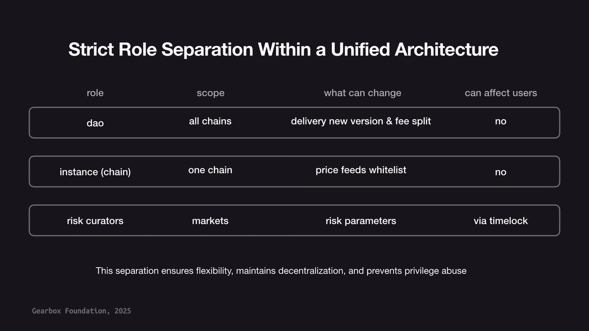 This separation ensures that no single role — not even the DAO — can compromise protocol integrity.