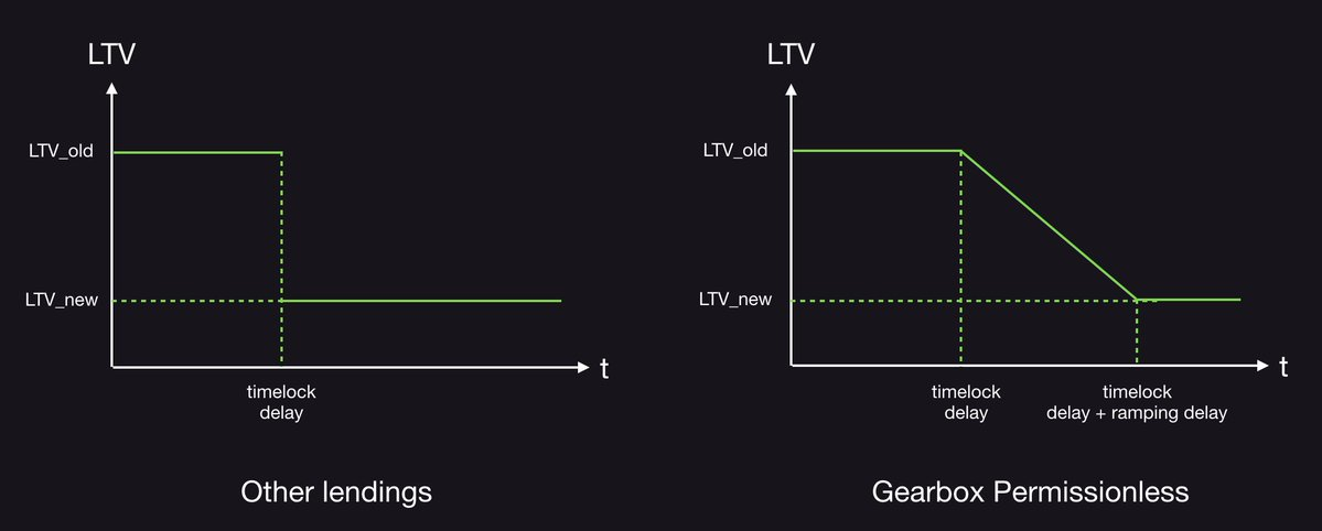 In Gearbox, curators can forbid specific tokens, adjust interest rate curves, or increase liquidation thresholds to mitigate risks associated with toxic assets.